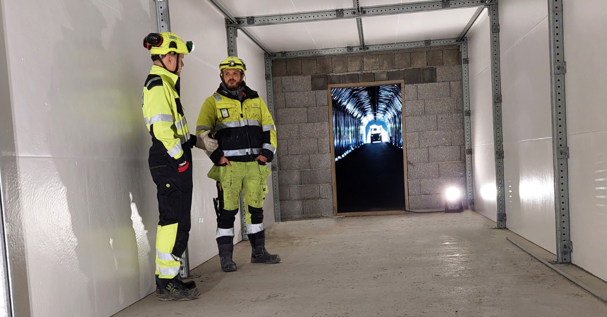 Vi er inne i en av tunnelene som skal bli en del av den nye E39 mellom Kristiansand og Mandal, et av Nye Veiers prosjekter hvor Hæhre står som hovedentreprenør. Rommet vi står i er en viktig del av sikkerheten i tunneler, nemlig en sluse i nødutgangen. Men denne delen er litt annerledes i det at den er laget av et helt unikt materiale kalt Foamrox. Elementene er sammensatt av to komponenter, celleglass og polyurea. Celleglass er laget av 100 prosent resirkulert glass og er med på å styrke sirkulærøkonomien, er både miljøvennlig og bærekraftig og sertifisert til brannklasse EI60.